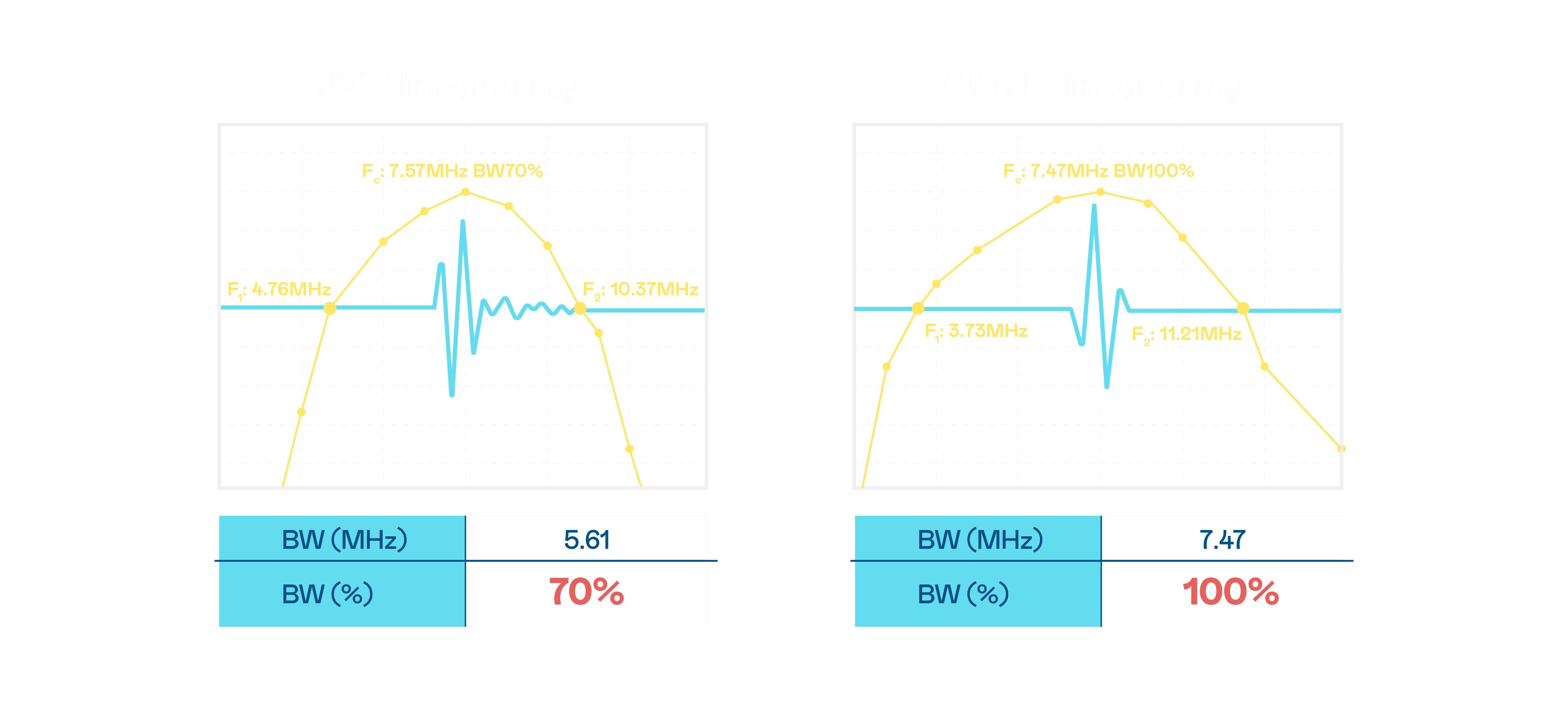 超音波影像的解析度高低,,首先取决于探头能发出的讯号频宽。。彩运网 CMUT 可提供高清晰的超音波讯号,,,提供高频宽、、、、高灵敏度、、影像纹理细节更高的超音波影像,,,,协助医护人员缩短影像判读时间及利用精准的医疗影像进行诊断。。