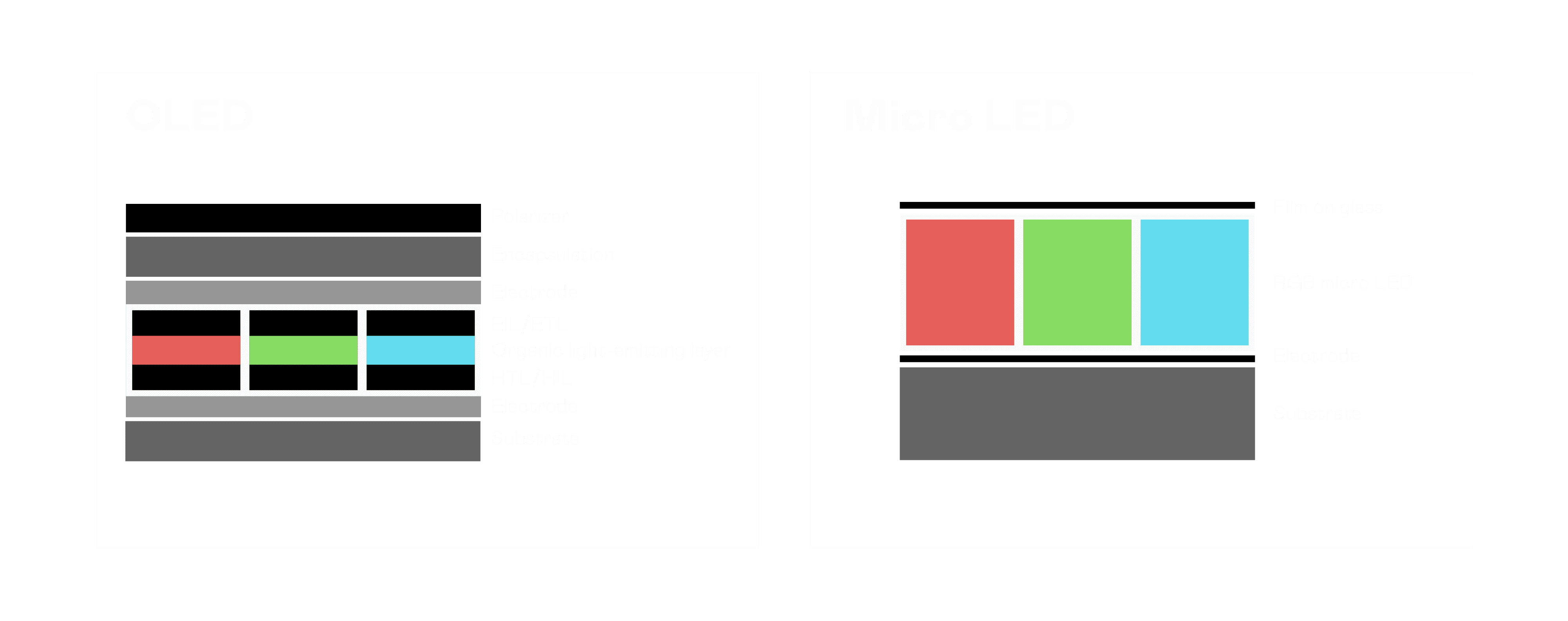 以 LED 做为显示画素,,,可让 LED 的发光效率发挥到极致,,从而让显示器具备优异的亮度表现,,,不论是在户外或室内,,均具备出众的显示效果。。。同时,,与使用有机材料的 OLED 相比,,,LED 具备更稳定、、、寿命更长的特性,,,,不仅不会有画面烙印问题,,,而且更不容易出现故障、、、坏点。。。。